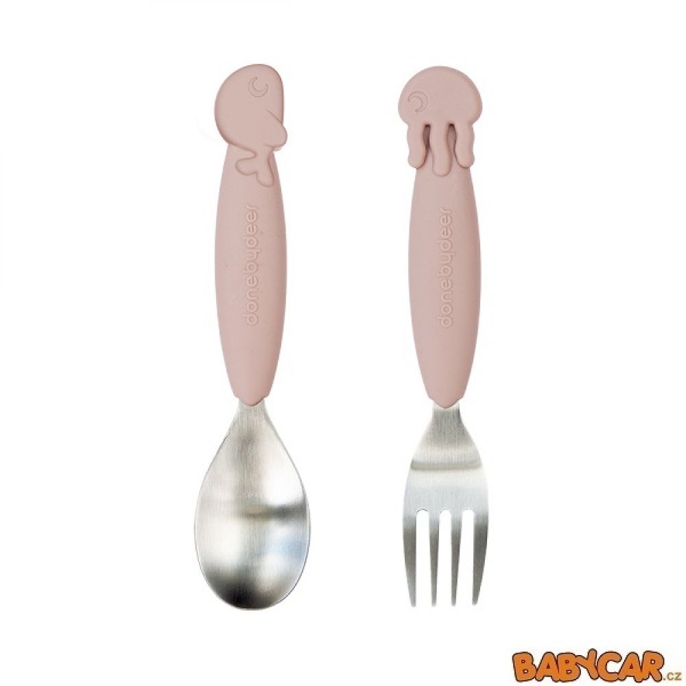 DONE BY DEER set lžíce a vidličky YUMMYPLUS SEA FRIENDS Růžová