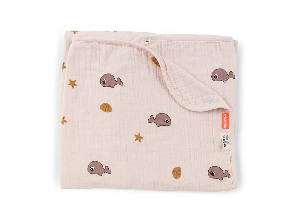 Dětská deka Sea friends z mušelínu je měkká a lehká zavinovačka vyrobená z organické bavlny s certifikací GOTS. Zabalením miminka do měkké dětské deky dopřejete dítěti pocit pohodlí a klidu. Dvouvrstvá mušelínová deka skvěle napodobuje bezpečné prostředí z matčina lůna. Deka je silnější než naše zavinovačky a snadno do ní Vaši ratolest zabalíte. Deku je možné prát na 60 °C. Mušelínovou deku zdobí potisk velryby Wally a medůzy Jelly.