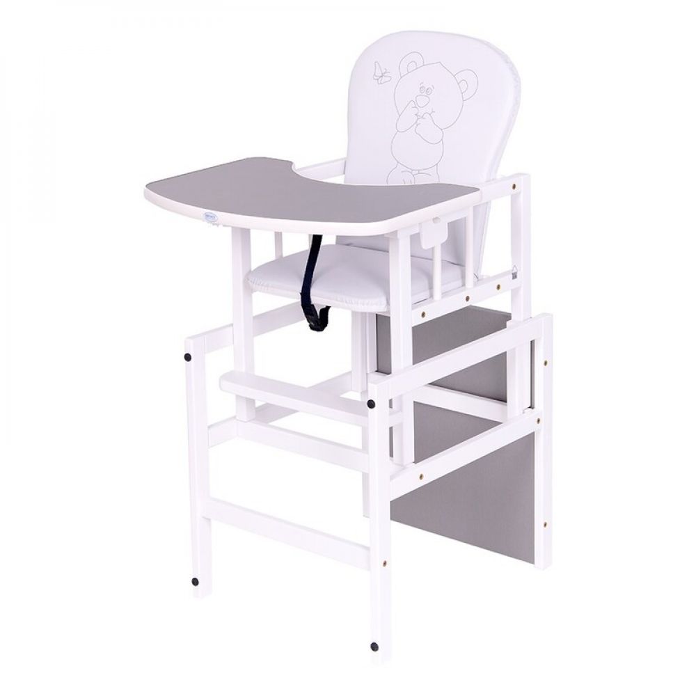Multifunkční židlička Drewex Antonín Medvídek s hvězdičkou je vyrobena z kvalitního borovicového dřeva. Jídelní židličku lze rozložit a použít jako samostatný stůl se židličkou, což lze využít také během zábavy. Výška samostatné židličky je 71 cm. Rozměry: cca 102x53x45cm. Rozměry: židlička složená: cca 102x53x45cm. Rozměry: samotná židlička : šířka sedací část : cca 36 cm, délka sedací části : cca 28 cm, výška zádové opěrky: cca 45 cm. Momentálne v nabídce s bílým táckem.