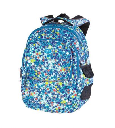 Easy školní batoh Tyrkysově - modré kostičky je moderní školní a sportovní tříkomorový batoh, který má speciálně profilovanou a vyztuženou zadní stranu.