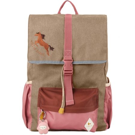 Fabelab's Backpack - Small - Wild at Heart je skvělý na malé výlety a dobrodružství. Batoh má přední kapsu se zipem na menší předměty a snadno se zapíná pomocí šňůrky a předního zapínání na klopu. Pro pohodlí a funkčnost jsou ramenní popruhy polstrované a pro optimální přizpůsobení je přidána křížová přezka na hrudi. Navíc jsou vpředu i vzadu umístěny reflexní detaily, které napomáhají viditelnosti dítěte. Uvnitř batohu jsou dvě samostatné kapsy vhodné na menší předměty a cool odznak ve tvaru kosočtverce, na který si můžete napsat své jméno.