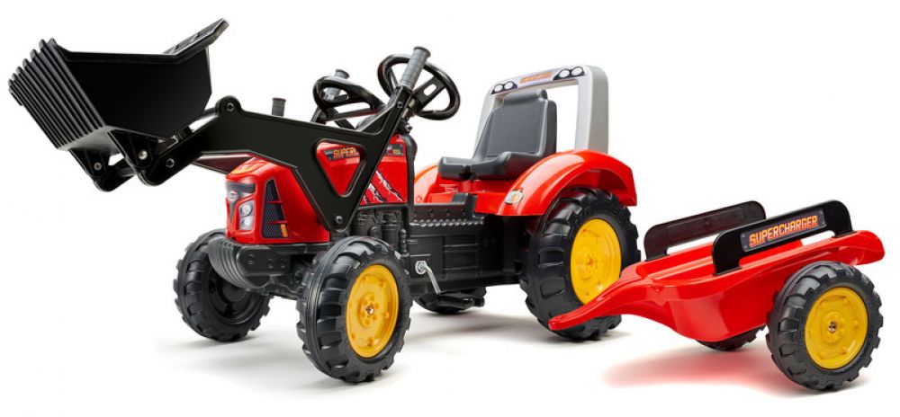 FALK Šlapací traktor 2020M Supercharger červený, výrobce FALK. Realistická kopie známé značky traktoru. Vyrobeno z vysoce kvalitního odolného plastu s ohledem na bezpečnost dětí S vlečkou S předním nakladačem S klaksonem na volantu Rozměry: Délka s vlečkou 195 cm, Výška 66 cm, Šířka 54 cm. Nosnost 50 kg Pro děti od 3 do 7 let