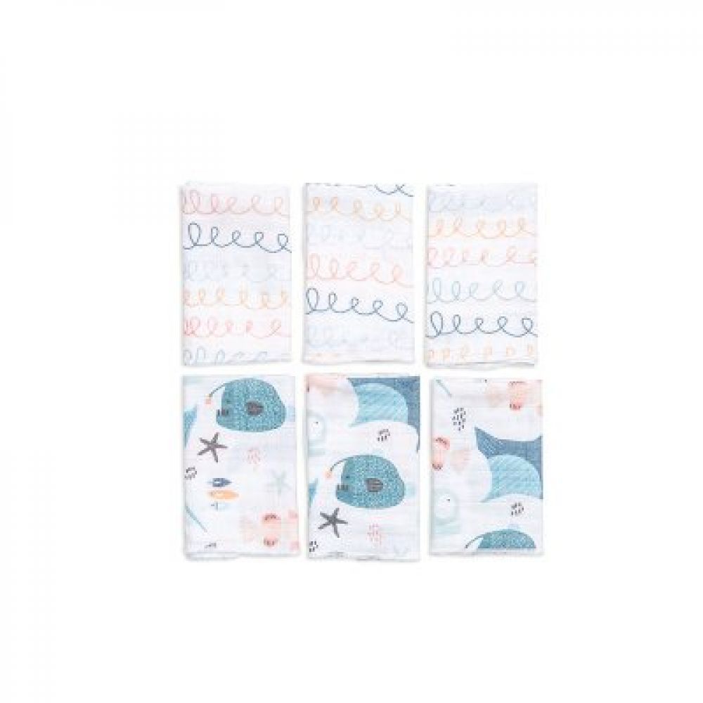 Set plenek set 6 ks malých plenek ideální například jako slintáček nebo utěrka na cesty příjemný a měkký materiál materiál: 100% bavlna rozměry: 30 x 30 cm