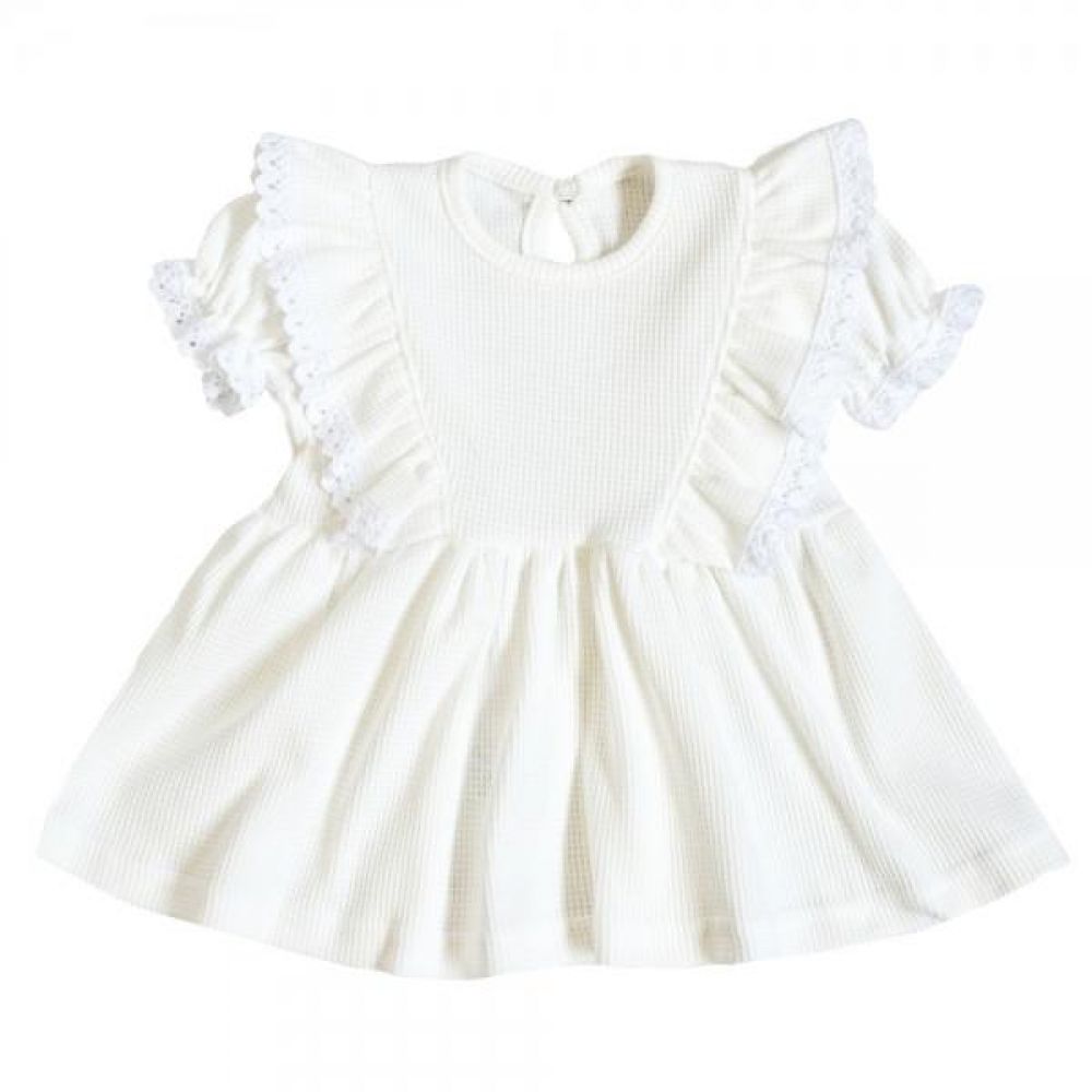 G-baby Letní vaflové šaty Princess s volánkem a krajkou - smetanové, vel. 80, 80 (9-12m)
