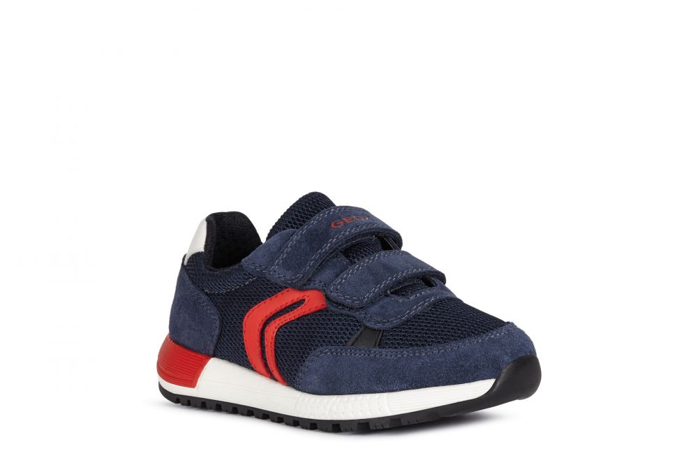 GEOX chlapecké pohodlné tenisky ve stylu retro běžeckých bot. Povrch se semišovými prvky a síťovinou. Se zapínáním pomocí suchého zipů pro snazší obutí a speciální děrovanou, prodyšnou podrážkou (technologie RESPIRA), mezipodešví EVA pro lehkost, pružnost a tlumení nárazů a s vyjímatelnou vnitřní koženou, antibakteriální stélkou - bez použití chromu.