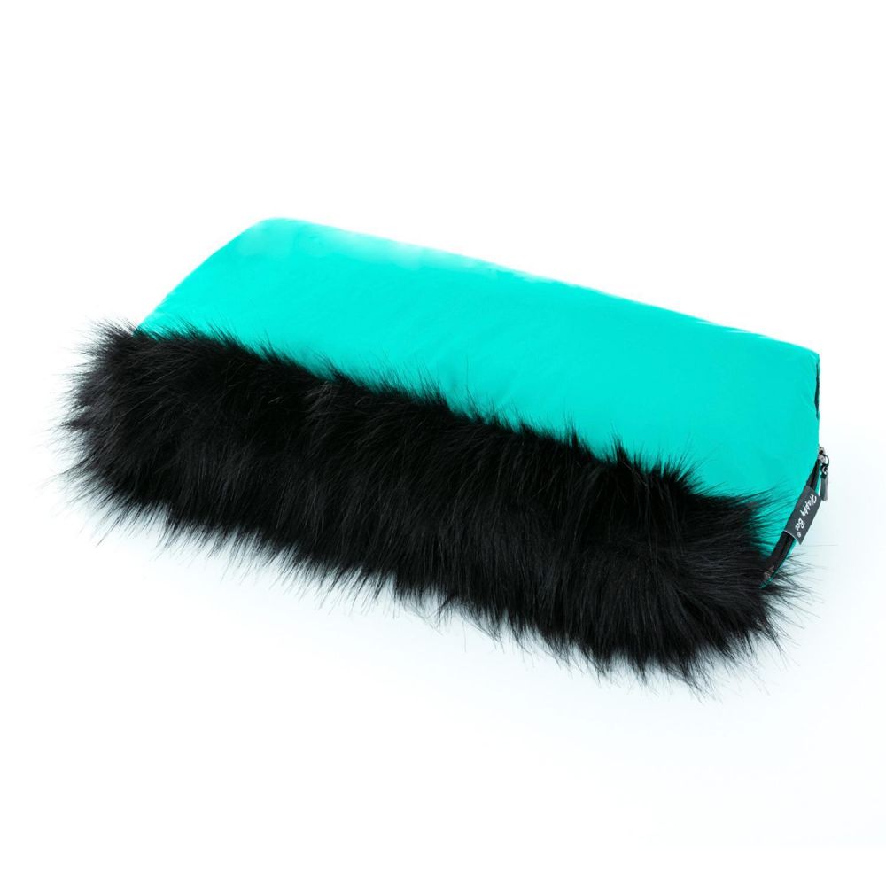 Barva: tyrkysová, Materiál: velvet plyš/polyester, Umístění: kočárek, Typ zapínání: pojízdné zipy, Délka: 45, Odnímatelná kožešina: ne