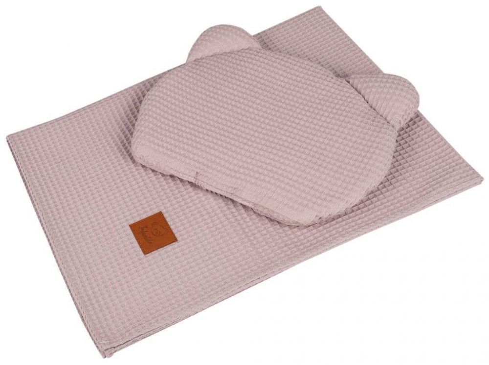 Souprava se skládá z tenké přikrývky a polštářku Teddy. Vyrobeno z vysoce kvalitních materiálů. Je velmi jemný a příjemný na dotek. Zajímavá bavlněná vazba znamená, že sada "WAFFLE" slouží i jako dekorační prvek do pokojíčku a kočárku. Polštáře jsou vyplněny jemnou antialergickou silikonovou netkanou textilií. Netkaná textilie je všitá do švu, což znamená, že se při používání ani praní nehýbe.Polštář v sadě je plochý - cca 2 cm vysoký, vytvořený speciálně pro miminka.Certifikované materiály, ze kterých je sada vyrobena, zaručují vysokou kvalitu produktu a dlouhodobé používání.Soupravu lze prát v pračce a žehlit.Rozměry: deka - 75 cm x 100 cm, polštář - cca 35 x 30 cm.Složení: 100% bavlna, 100% silikonová netkaná textilie.