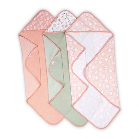 Po opláchnutí pěny zabalte své čisté a jemňoučké dítě do teplého objetí pomocí osušek s kapucí Ingenuity Clean & Cuddly ™. Vlastnosti: - Lehká, měkká tkanina s vnitřním froté povrchem je savá, měkká a hebká pro jemnou pokožku dítěte. - Kapuce udržuje hlavu dítěte v teple a pohodlí, zatímco se čtvercová osuška omotá kolem dítěte, aby rychle absorbovala vlhkost. - Každé balení 3 kusů je dodáváno v rozkošném sortimentu růžového potisku a pevné látky, takže je to perfektní dárek pro miminko. - Vnitřní strana osušky jemňoučké froté a vnější strana hladká s potiskem zvířátka (případně jednobarevná). - Vhodné pro děti od narození. Rozměry: cca 75x75 cm (+ - 3cm). Materiál: 80% bavlna 20% polyester Doporučujeme dodržovat prací symboly na etiketě výrobku.