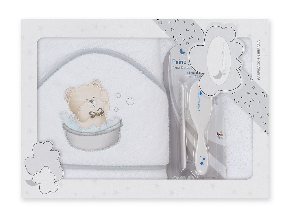 INTERBABY | Osuška froté MEDVÍDEK VE VANĚ + hřeben - BÍLO-ŠEDÁ