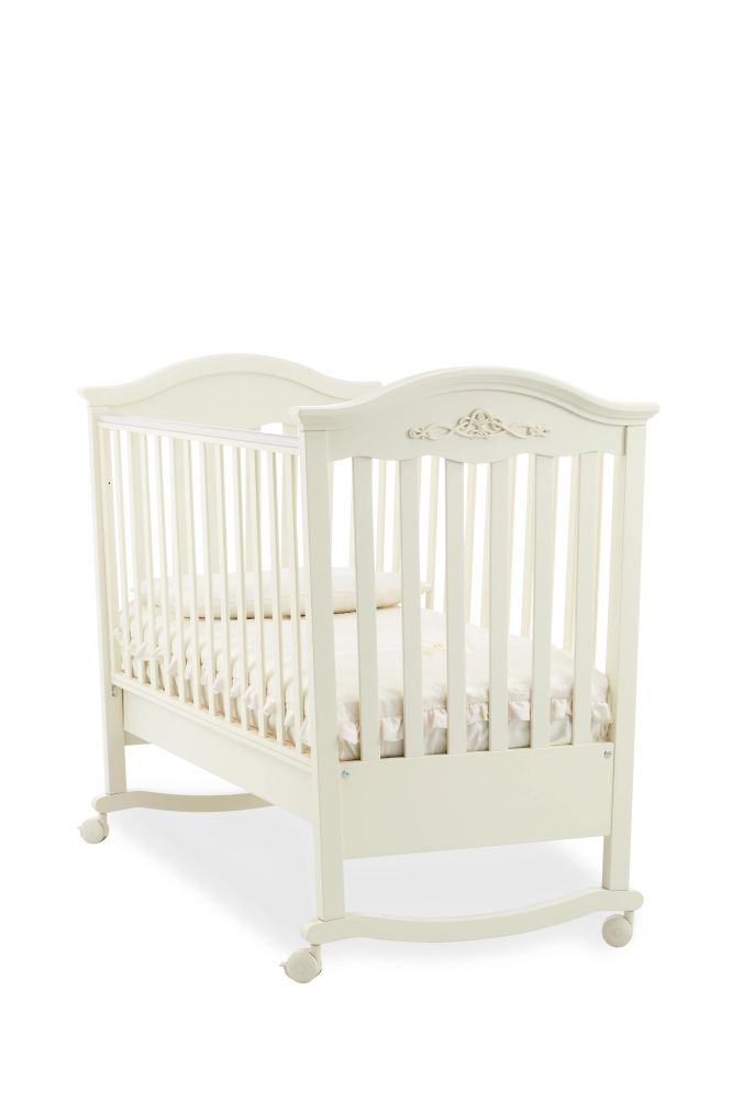 Houpací dětská postýlka v klasickém italském stylu z masivního bukového dřeva s možností nastavení výšky matrace a s posouváním nebo odnímáním bočnic. Kvalitní dětská postýlka je navržena tak, aby uspokojila potřeby a vývoj od novorozence až po batolecí věk. Součástí postýlky je praktický šuplík a kolečka s brzdou pro lepší manipulaci a přesouvání.