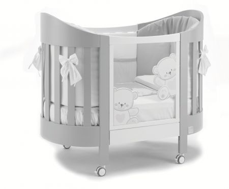 Oválná dětská postýlka s matrací a komplet dětským povlečením je navržena tak, aby uspokojila potřeby a vývoj vašeho děťátka od novorozence až po batolecí věk. Kvalitní italská postýlka s dřevěným roštem a jednou posuvnou bočnicí. Postýlka je vybavena praktickou zásuvkou a pogumovanými kolečky pro lepší manipulaci.
