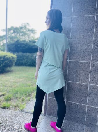 Kojící trička mají delší a pohodlný střih. Materiál je úplet bavlna/elastan. Stačí odhrnout vrchní díl, pod kterým je hlubší výstřih, a vy tak můžete pohodlně a diskrétně nakojit.