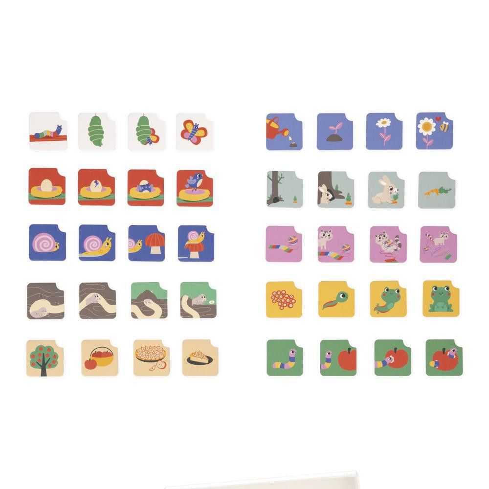 Edukační dřevěná hra je vyvinuta ve spolupráci s pedagogem pro děti od 3 let, je vhodná i pro děti v mateřské škole. Edukační dřevěná hra je vyvinuta ve spolupráci s pedagogem pro děti od 3 let, je vhodná i pro děti v mateřské škole. Jak vzniká motýl? Jak se semínko promění v květ? Doprovázejte své dítě při objevování přírody pomocí sekvenčních karet. Cílem hry je najít chronologii každé akce. Hra obsahuje 10 akcí po 4 etapy, tj. 40 karet, jakož i dřevěnou základnu. Díky samostatnému uvažování se vaše dítě naučí chronologicky zařazovat akce, rozvíjet své myšlení a pozornost. K dispozici je také systém autokorekce. Alternativou je i spolupráce s rodičem, kde můžete doprovázet své dítě při učení: nechte ho položit kartičky na základnu a poté vám vysvětlí, jak se scéna vyvíjí. Hra vyrobena ze dřeva FSCTM a kartonu. Edukační hra vyvinutá ve spolupráci s učitelkou pro děti od 3 let.