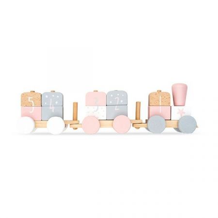 Dřevěný jezdící vláček Jollein se skládá z 15 dílů, které lze libovolně skládat a přehazovat. Je příjemný na dotek a šikoně velký pro dětské ručičky. Podporuje koordinaci očí, rukou a jemné motoriky, také skvěle doplňuje celou kolekci Jollein.
