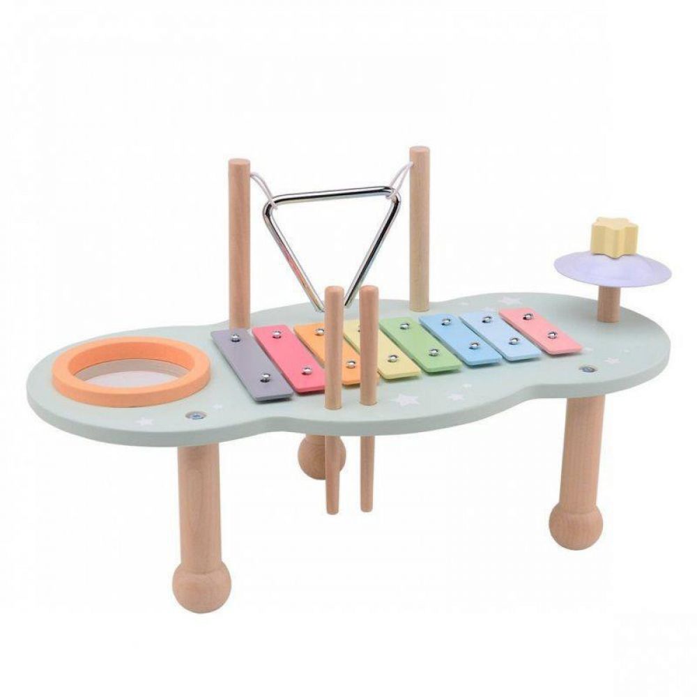 Dřevěný hudební stoleček s nástroji. Je dokonalou hračkou pro batole, aby prozkoumalo a rozvinulo své hudební schopnosti a objevilo hudební talent. Dřevěný hudební stoleček s nástroji. Je dokonalou hračkou pro batole, aby prozkoumalo a rozvinulo své hudební schopnosti a objevilo hudební talent.- dřevěná hudební sada pro nejmenší děti- základem je malý dřevěný stoleček s hvězdičkami, na kterém je umístěno:- 8 barevných tónových kláves- bubínek s průhlednou membránou- kovový triangl- 2 dřevěné paličky- činel- sada je navržena tak, aby byly všechny nástroje po ruce- vše v krásných, pastelových barvách- vyrobené z vysoce kvalitního dřeva- bezpečné, pokryté zdravotně nezávadnou barvou- rozměr: cca 44,8 cm x 22,5 cm x 24,5 cm- vhodné pro děti od 12 měsíců- zabaleno v krabičce - vhodné jako dárek