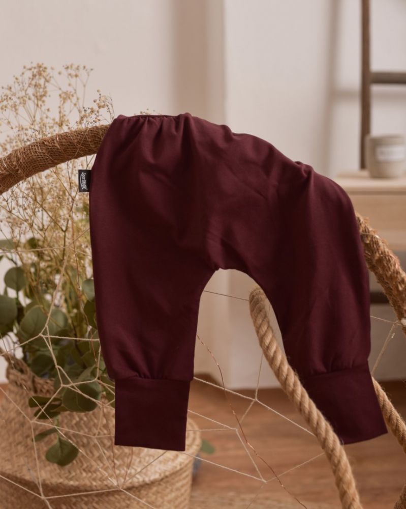 Jožánek Dětské kalhoty baggy, lehké, bordo 134 Lehké baggy kalhoty pro děti. Extra pohodlí a volnost pohybu pro děti všech tvarů. Opravdu rostoucí kalhoty bez gumy v pase. moderní kousek dětského šatníku opravdové rostoucí kalhoty - rostou s dítětem do výšky i šířky, "ujdou" s dítětem třeba i 5 běžných dětských velikostí, to ale spíše jen s opravdovými hubeňoury v pase nemají gumu, jen elastický náplet = ideální řešení pro hubeňoury i cvaldy Extra hubeným dětem doporučujeme přeměřit pas a pořídit případně o číslo menší. Na délku budou stačit, toho se nemusíte vůbec bát. Díky měkkým nápletům na nohách dítě může nosit kalhoty jemně přepadlé přes náplety i natažené. Délkou jsou koncipovány tak, aby padly jako na fotkách, tj. ne hodně přepadlé, ale dostatečně volné. Ze stejné látky od značky Jožánek můžete pořídit mnoho dámských i dětských kousků, můžete se barevně i materiálově sladit od hlavy až k patě. Úplet je lehčí, tyto dětské tepláčky jsou tedy vhodné jako vzdušný kousek do teplých dní, také na doma, máte-li teplo, či na spaní. Miminkům slouží baggy jako polodupačky bez ťapek. To je ideální obleček pro děti např. do šátků a nosítek, aby jim natažené dupačky nebránily v pohybu nohou. Ale i ostatní miminka obzvlášť v létě ocení možnost mít holé nožky a chladit se. Starší děti užijí baggy kdekoli a kdykoli. Jsou totiž tak pohodlné a umožňují takový rozsah pohybu, že je možné je nosit na jakoukoli aktivitu. Velice oblíbené jsou i na spaní. Pokud tedy chcete extra pohodlné pyžámko z pohodlné, prodyšné a certifikované bavlny, stačí k baggy kalhotám dokoupit už jen tričko. Materiál: bavlněný "tričkový" úplet: 94% bavlna, 6% elastan (cca 185 gr/m2) Kdo má rád přírodní materiály, a hlavně bavlnu, ten z úpletu nemůže nebýt nadšený. Je hladký, pevný a přitom tak akorát lehký, nežmolkuje ani po mnoha praních. Pokožka v něm dýchá, netrpí (ani ta citlivá). V úpletech od Jožánka budete prostě doslova jako v bavlnce. U značky Jožánek se nemusíte bát, co sobě nebo svým dětem oblékáte, bavlněné úplety mají atest nejvyšší třídy Ökotex certifikát Standard 100, tř. I (vhodný pro použití i pro děti již od narození). Tabulka velikostí: velikost celková boční délka (vč. nápletů) šíře pasu 62 33 cm 14 cm 68 36 cm 15 cm 74 39 cm 16 cm 80 41 cm 17 cm 86 44 cm 18 cm 92 46 cm 19 cm 98 49 cm 20 cm 104 53 cm 21 cm 110 56 cm 22 cm 116 60 cm 23 cm 122 64 cm 24 cm 128 68 cm 25 cm 134 74 cm 26 cm 140 78 cm 27 cm