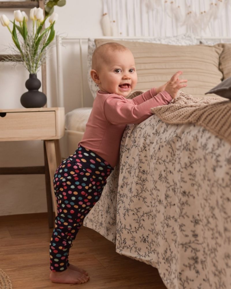 Jožánek Dětské kalhoty baggy, lehké, lentilky na modré Lehké baggy kalhoty pro děti. Extra pohodlí a volnost pohybu pro děti všech tvarů. Opravdu rostoucí kalhoty bez gumy v pase. moderní kousek dětského šatníku opravdové rostoucí kalhoty - rostou s dítětem do výšky i šířky, "ujdou" s dítětem třeba i 5 běžných dětských velikostí, to ale spíše jen s opravdovými hubeňoury v pase nemají gumu, jen elastický náplet = ideální řešení pro hubeňoury i cvaldy Extra hubeným dětem doporučujeme přeměřit pas a pořídit případně o číslo menší. Na délku budou stačit, toho se nemusíte vůbec bát. Díky měkkým nápletům na nohách dítě může nosit kalhoty jemně přepadlé přes náplety i natažené. Délkou jsou koncipovány tak, aby padly jako na fotkách, tj. ne hodně přepadlé, ale dostatečně volné. Ze stejné látky od značky Jožánek můžete pořídit mnoho dámských i dětských kousků, můžete se barevně i materiálově sladit od hlavy až k patě. Úplet je lehčí, tyto dětské tepláčky jsou tedy vhodné jako vzdušný kousek do teplých dní, také na doma, máte-li teplo, či na spaní. Miminkům slouží baggy jako polodupačky bez ťapek. To je ideální obleček pro děti např. do šátků a nosítek, aby jim natažené dupačky nebránily v pohybu nohou. Ale i ostatní miminka obzvlášť v létě ocení možnost mít holé nožky a chladit se. Starší děti užijí baggy kdekoli a kdykoli. Jsou totiž tak pohodlné a umožňují takový rozsah pohybu, že je možné je nosit na jakoukoli aktivitu. Velice oblíbené jsou i na spaní. Pokud tedy chcete extra pohodlné pyžámko z pohodlné, prodyšné a certifikované bavlny, stačí k baggy kalhotám dokoupit už jen tričko. Materiál: bavlněný "tričkový" úplet: 94% bavlna, 6% elastan (cca 185 gr/m2) Kdo má rád přírodní materiály, a hlavně bavlnu, ten z úpletu nemůže nebýt nadšený. Je hladký, pevný a přitom tak akorát lehký, nežmolkuje ani po mnoha praních. Pokožka v něm dýchá, netrpí (ani ta citlivá). V úpletech od Jožánka budete prostě doslova jako v bavlnce. U značky Jožánek se nemusíte bát, co sobě nebo svým dětem oblékáte, bavlněné úplety mají atest nejvyšší třídy Ökotex certifikát Standard 100, tř. I (vhodný pro použití i pro děti již od narození). Tabulka velikostí: velikost celková boční délka (vč. nápletů) šíře pasu 62 33 cm 14 cm 68 36 cm 15 cm 74 39 cm 16 cm 80 41 cm 17 cm 86 44 cm 18 cm 92 46 cm 19 cm 98 49 cm 20 cm 104 53 cm 21 cm 110 56 cm 22 cm 116 60 cm 23 cm 122 64 cm 24 cm 128 68 cm 25 cm 134 74 cm 26 cm 140 78 cm 27 cm