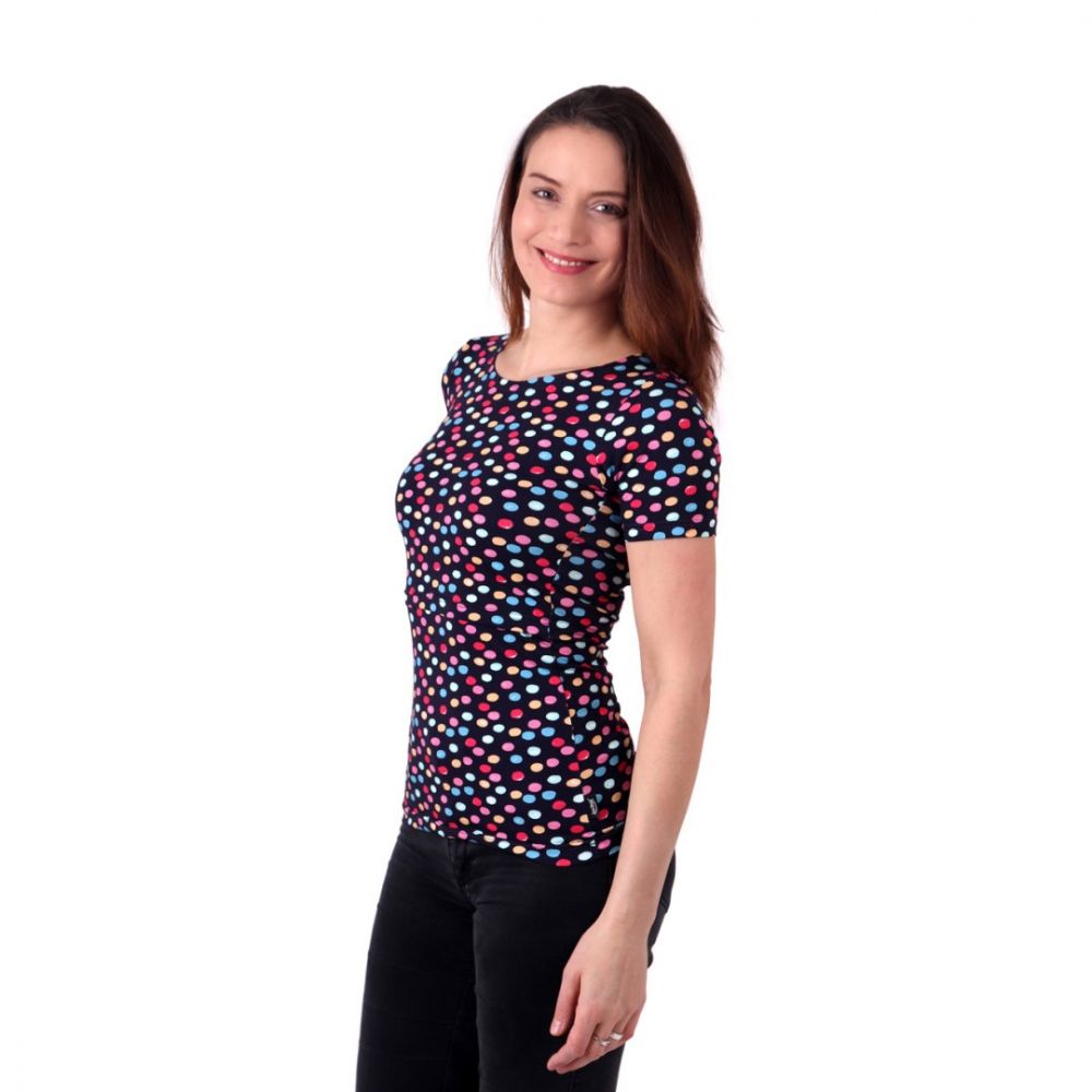 Jožánek Kojicí tričko Lenka s krátkým rukávem lentilky na modré M/L Nejoblíbenější střih trička s krátkým rukávem a lodičkovým výstřihem pro kojící maminky pro celoroční nošení. Umožňuje absolutně diskrétní a pohodlné kojení. Skvělý střih i pro kojení v šátku nebo v nosítku. Kojící ženy oceňují jednoduchý, nadčasový design, který je možné zkombinovat s téměř jakýmkoli outfitem. V nabídce máme širokou barevnou škálu s autorskými digitálními potisky, vybere si každá kojící maminka. Kojicí tričko je ušité z příjemného bavlněného úpletu. Tričko má přední díl zakončený nahoře gumičkou nad prsy a přes něj je krátký díl končící pod prsy, takže vyhrnutím toho vrchního a stažením toho spodního získáte diskrétní prostor pro pohodlné kojení miminka. Kdo vyzkouší, již se neobtěžuje kojením v běžném oblečení, při kterém se musí odhalit celý hrudník nebo břicho. Kojte v tričku Lenka a všechno, co budete mít odhalené, Vám zakryje hlavička krmícího se miminka. Pro pohodlné kojení v zimní sezóně doporučujeme kojicí rolák. Kojení v zimě už nebude nikdy mrazivé a nepříjemné, ani venku! Materiál: bavlněný "tričkový" úplet: 94% bavlna, 6% elastan (cca 185 g/m2) Kdo má rád přírodní materiály, a hlavně bavlnu, ten z úpletu nemůže nebýt nadšený. Je hladký, pevný a přitom tak akorát lehký, nežmolkuje ani po mnoha praních. Pokožka v něm dýchá, netrpí (ani ta citlivá). V úpletech od Jožánka budete prostě doslova jako v bavlnce. U značky Jožánek se nemusíte bát, co sobě nebo svým dětem oblékáte, bavlněné úplety mají atest nejvyšší třídy Ökotex certifikát Standard 100, tř. I (vhodný pro použití i pro děti již od narození). Tabulka velikostí: Velikost XS/S S/M M/L L/XL Vaše konfekční velikost 36 38-40/42 40/42-44 46-50 Váš obvod přes prsa 80-90 cm 90-100 cm 100-110 cm 110-120 cm Šíře mezi průramky (měřeno v podpaží) 37 cm 40 cm 45 cm 50 cm Celková délka (měřeno na zádech) 65 cm 65 cm 65 cm 65 cm Výška sedla přes prsa (horního krátkého dílu) 35 cm 36 cm 37 cm 38 cm