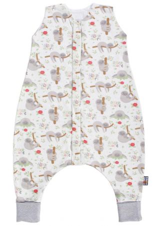 Letní spací pytel pro miminko s otvory pro nohy ve smetanové barvě s motivem lenochodů, miminko v něm může volně kopat nožičkami. Délka spacího pytle je cca 70 cm, lze jej prát v pračce při 40 °C. Délka spacího pytle odpovídá výšce dítěte k ramenům. Spací pytel má uprostřed zip a lze jej zcela otevřít v obou směrech, navíc má zip látkovou krytku, která zabraňuje přiskřípnutí krku do zipu. Náplet u nožiček lze přehnout a využít jako integrované ponožky. Spací pytel je ušitý ze dvou vrstev: vrchní materiál 50% modal 50% bavlna, podšívka 100% bambusová viskóza. Česká výroba.