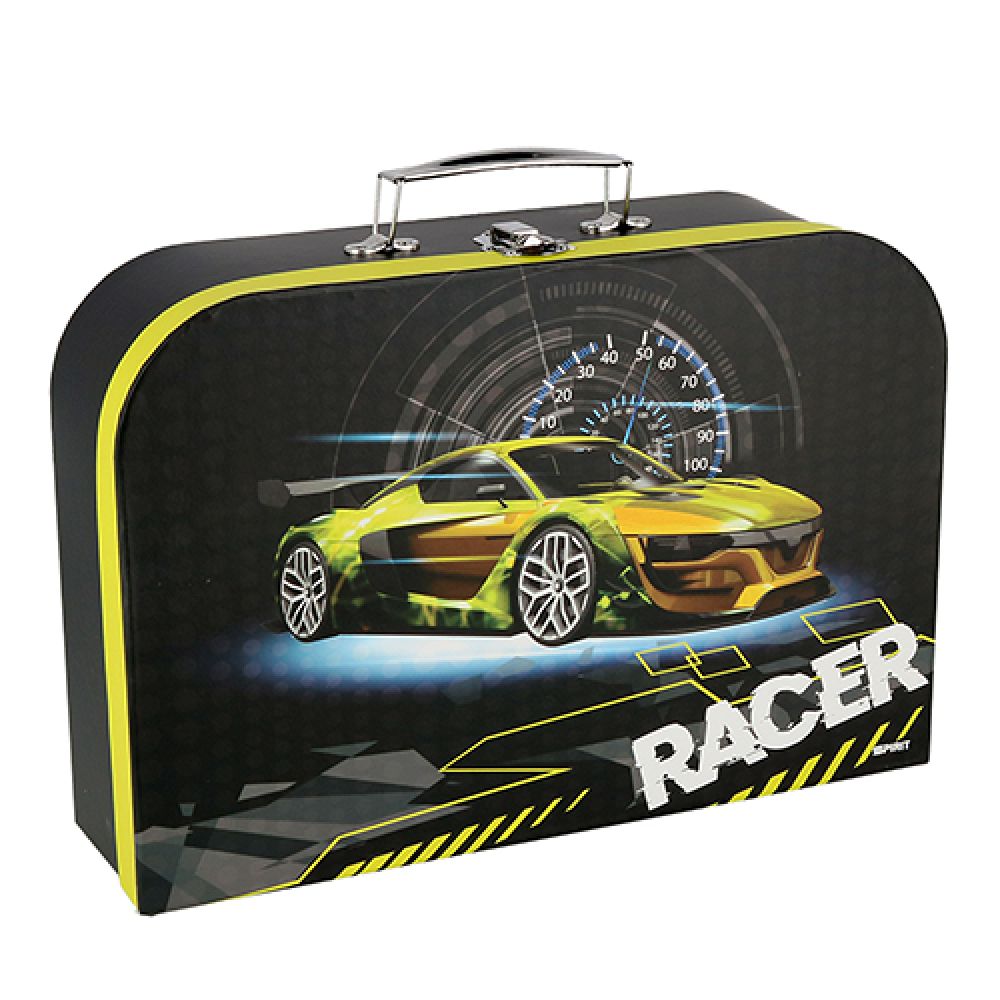 KARTON PP - Dětský kufřík - Racer Detský kufrík je určený pre predškolský vek. Vyrobený je z pevného kartónu so zámkom a kovovou rukoväťou. Žiadne vnútorné priečky. Skvelý na cestovanie, hranie a ukladanie drobností. Rozmery: 33x10x23 cm