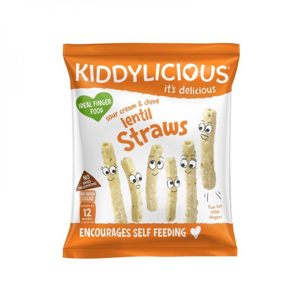 Lahodné čočkové tyčinky Kiddylicious mají duté vnitřky vaše miminko je snadno uchopí, jsou tedy ideálním pomocníkem k procvičování samostatného krmení a koordinace rukou a úst.Tyto tyčinky, ochucené zakysanou smetanou a pažitkou, jsou dokonalou svačinkou pro kteroukoliv denní dobu. Zábavná a chutná svačinka pro miminka, batolata a předškoláky.