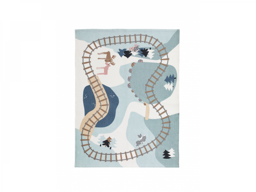 Koberec v designu lesa s kolejemi a zvířátky je ideální pro hru s dřevěným vlakem se zvířátky a dalšími doplňky ze série dřevěných hraček Edvin. Slouží i jako krásná dekorace dětského pokoje. Rozměry: 170 x 130 cm Materiál: 100% bavlna