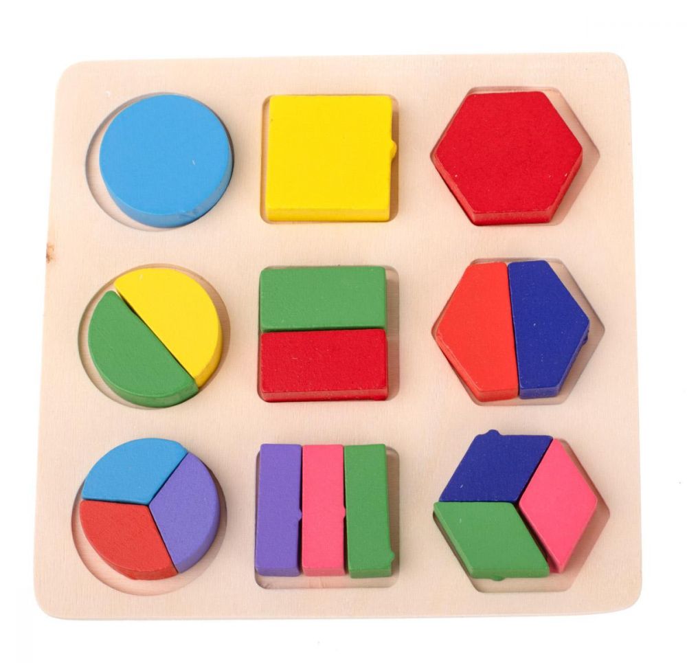 Barevné puzzle vyrobené výhradně ze dřeva. Zábava spočívá v přiřazování kostek ke správným otvorům. Sada obsahuje:18 barevných kostek různých tvarů a základnu. Rozměry: 15 cm x 15 cm x 1 cm