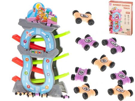 Víceúrovňová skluzavka pro auta. Přináší batoleti spoustu zábavy. Rozvíjí manuální dovednosti a představivost dětí. Sada obsahuje: prvky k sestavení dráhy, 8 autíček. Rozměry dráhy: 32x9x48cm. Rozměry vozu: 4x3,5x1,3 cm.