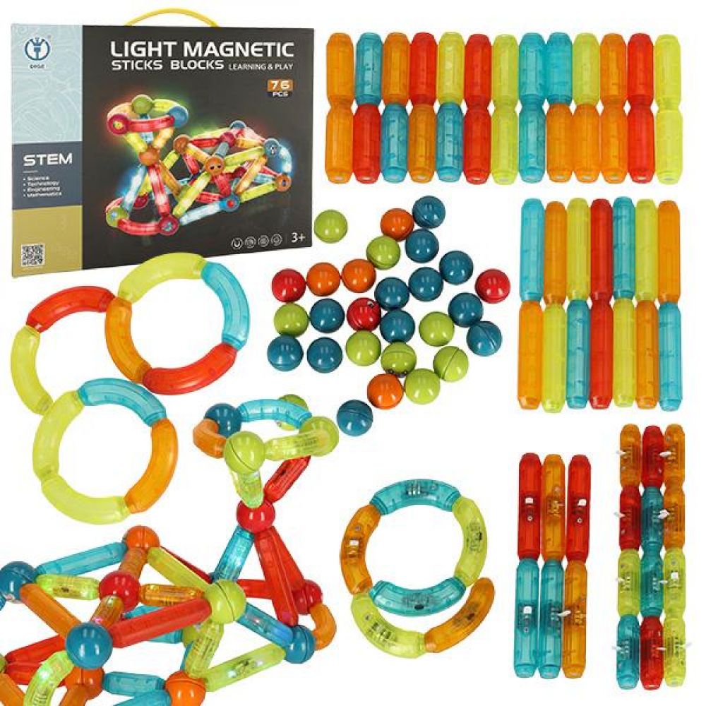 Sada magnetických kostek - některé z nich svítí, takže každá vytvořená stavba je ještě působivější. Hra s kostkami je vynikajícím tréninkem manuální zručnosti a představivosti. Počet prvků: 1 kus Počet prvků: 1 kus Počet prvků: 1 kus Počet prvků: 1 kus Počet prvků: 1 kus Počet prvků: 1 kus Počet prvků: 1 kus Počet prvků: 1 kus Rozměry největší kostky: 9x2,5 cm.