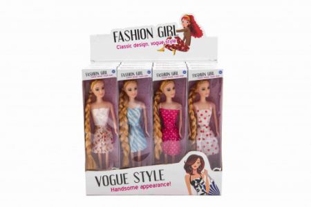 Kloubová plastová panenka s dlouhým copem a krásnými šaty vysoká 28 cm. Panenka je vhodná pro děti od 3 let věku.