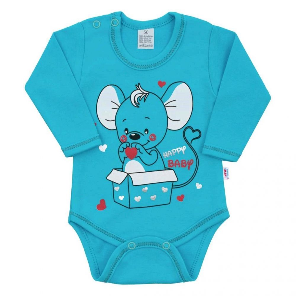 Recenze Kojenecké body s dlouhým rukávem New Baby Mouse tyrkysové 74 (6-9m)