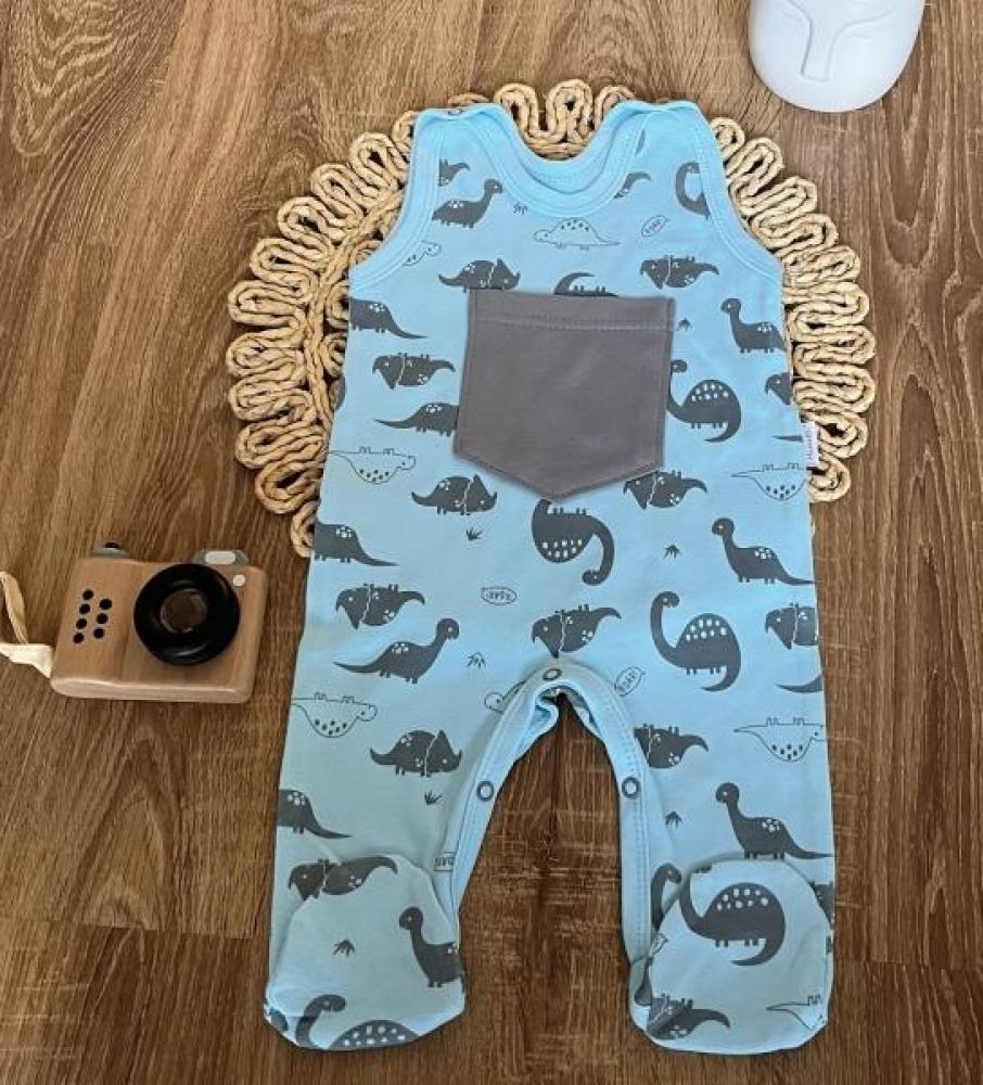 Kojenecké dupačky Mamatti, Dino park - modré s potiskem, vel. 62, 62 (2-3m)