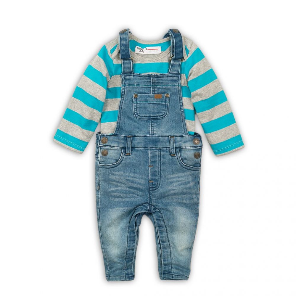 Kojenecký set chlapecký - tričko a kalhoty s laclem, Minoti, Leaf 6, modrá - 86/92