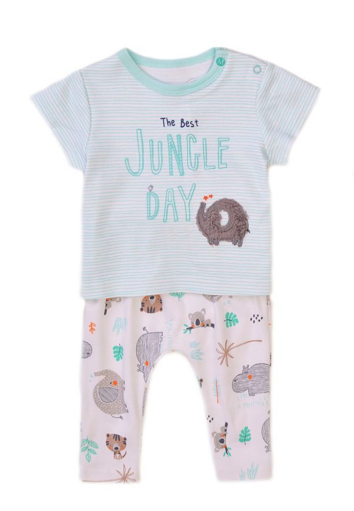 2 dílná souprava trička s pruhy a legín s celoplošným potiskem