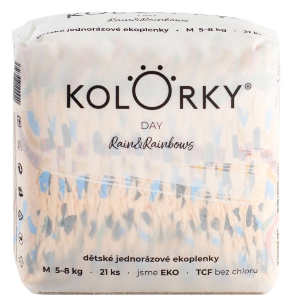 Recenze KOLORKY KOLORKY DAY Pleny jednorázové eko, déšť&duhy M (5-8 kg) 21 ks