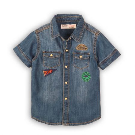 Recenze Košile džínová chlapecká s krátkým rukávem, Minoti, Roar 2, modrá - 104/110