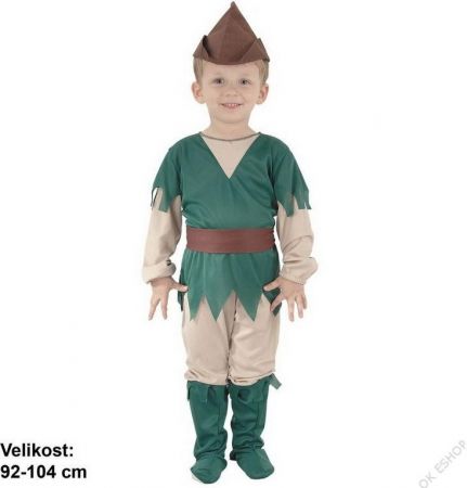 Karnevalový kostým - Lovčí. Velikost: pro malé děti (92 - 104 cm). Kostým je vhodný pro děti ve věku 3-4 roky. Balení obsahuje: - klobouk - košili - opasek - kalhoty - návleky na nohy Neobsahuje: - boty.