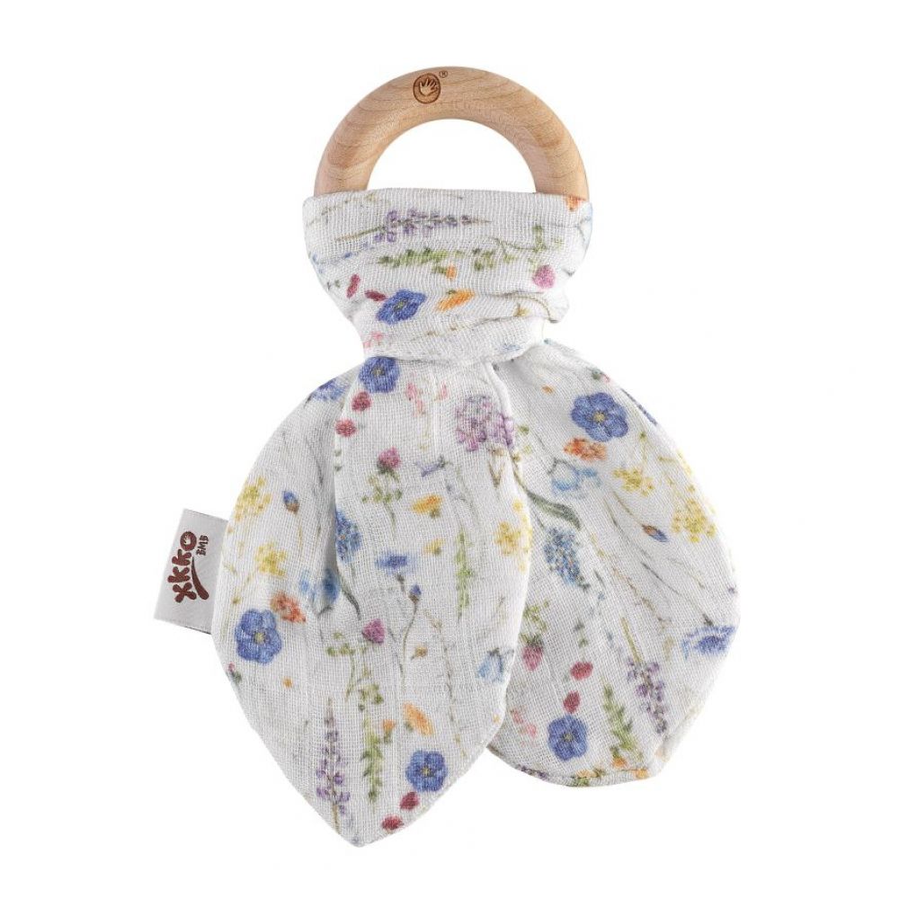 „Dřevěné kousátko XKKO BMB s šustivými lístky z extrémně jemného bambusového mušelínu. Bambusová viskoza je antibakteriální a nezpůsobuje žádnou alergickou reakci. Velký, dokonale hladký kroužek je ručně vyrobený z javorového dřeva. Kroužek není barvený ani lakovaný.“ Jako alternativu k těmto kusátkům Vám ještě můžeme nabídnout kousátka s odnímatelnou plenkou nebo čistě dřevěné kousací kroužky z javorového dřeva.