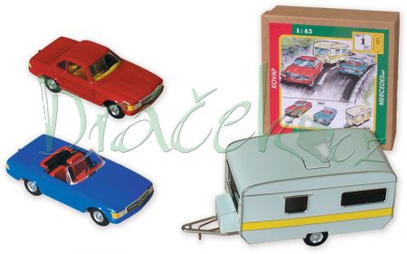 potištěný plech. Sada obsahuje Mercedes Cabrio,