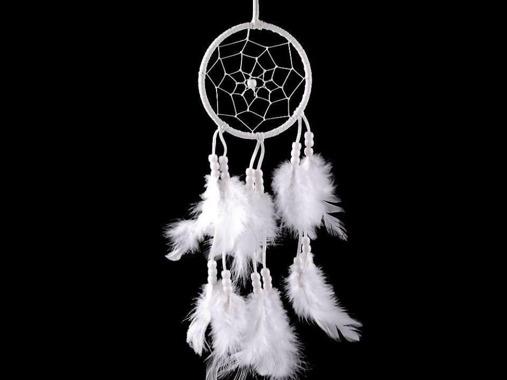 Lapač snů zdobí pletená síťka s korálkem. Na provázcích z eko kůže visí peříčka, která jsou doplněna korálky. Lapač snů zdobí pletená síťka s korálkem. Na provázcích z eko kůže visí peříčka, která jsou doplněna korálky.Lapač by měl být pověšený nad postelí. Podle indiánské legendy se špatné sny zachytí v síti a ráno je zničí denní světlo. Dobré sny sklouznou po peříčku do duše spícího. Průměr: 10,5 cm Celková délka: cca 39 cm