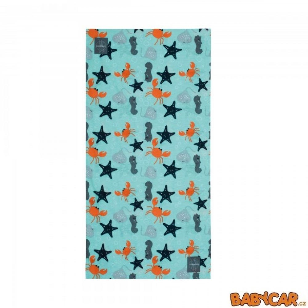 - lehký pružný materiál umožňuje různé varianty použití – šátek na krk, čelenka na vlasy, čepice, pirátský šátek, pytlík na mušle nebo gumička do vlasů
