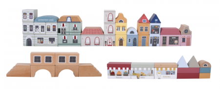 Stavební kostky - městská sada pro hraní a stavění v krásném barevném provedení. Obsahuje různé tvary a barvy kostek, které zdokonalují motoriku, kreativitu a vzdělávání dítěte. Dobře se kombinuje s novinkou - vlaková souprava.