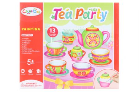 Navrhni a vybarvi si svůj vlastní keramický čajový set. Obsahuje konvičku o velikosti cca 10 cm x 7 cm, 4 hrnečky s podšálky, 1 džbánek a cukřenku, 6 barviček a štětec, návod. Rozměry balení cca 29 x 25,5 x 6,5 cm. Věk 5+