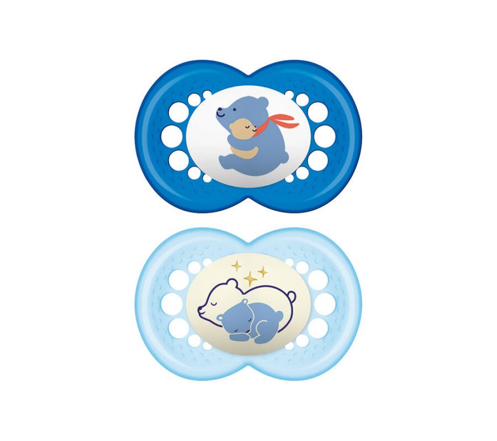 Dokonale sladěný design pro den a noc MAM dudlík Day & Night má dokonale sladěný design pro den a noc. Výhodné balení dvou dudlíků v praktickém sterilizačním boxu. Knoflík nočního dudlíku svítí ve tmě, takže ho rodiče i děti snadno mohou nalézt. Dudlík má symetrický tvar, a proto se vždy dokonale přizpůsobí dětským ústům. Díky knoflíku ho lze snadno a rychle uchopit a rovněž jednoduše připevnit k pásku. Inovativní savička MAM je jemná jako pokožka a je dětmi snadno přijímána. Dudlík je šetrný k pokožce díky velkým vzduchovým otvorům a také unikátním MAM důlkům. MAM dudlíky byly vyvíjeny společně se zubními experty pro zdravý vývoj zubů. Obrázky na dudlíkách nemusí odpovídat fotografiím, skladové zásoby se neustále mění. Je možné vybrat barevnou variantu, kterou, prosím, uveďte do poznámky.
