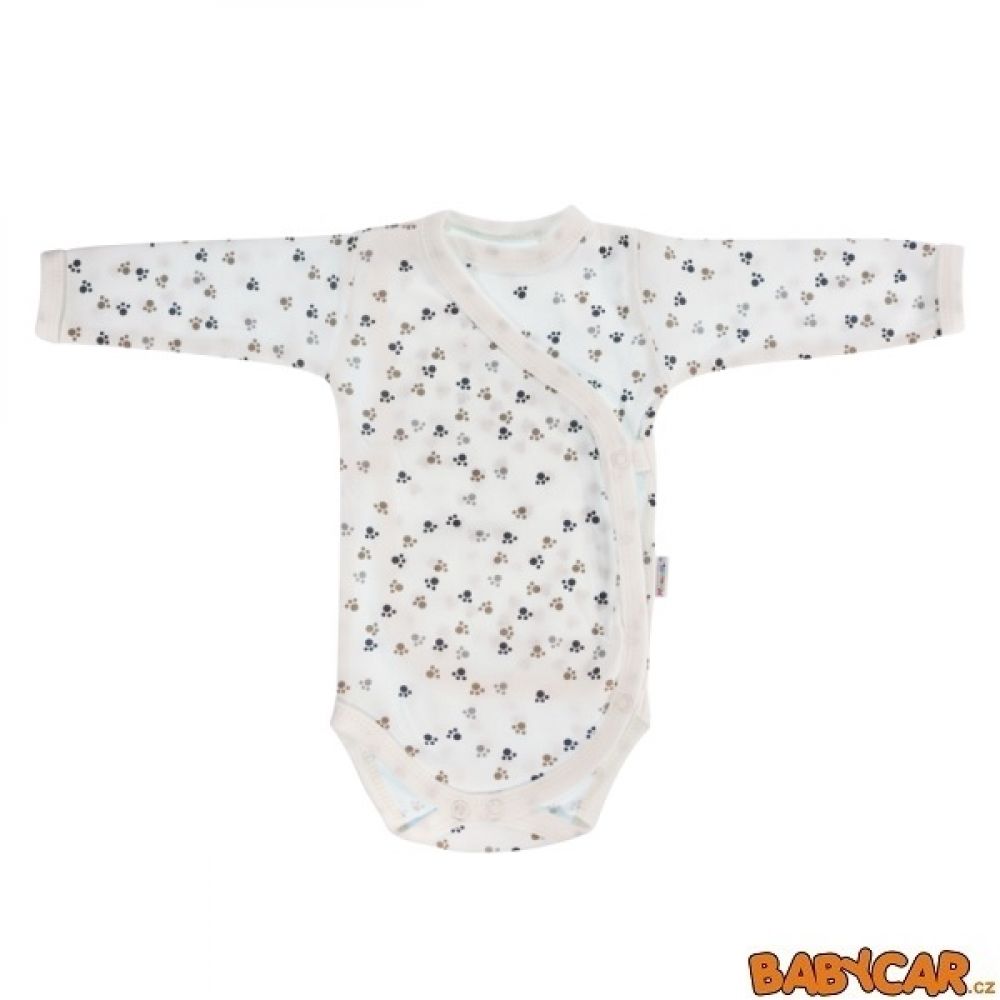 MAMATTI bavlněné body s dlouhým rukávem, zapínání bokem Tlapky/Bílá vel. 62
