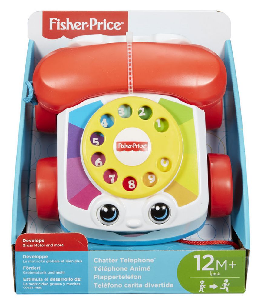 Crrr – Crrr! Řekni „ahoj“ do tohoto úžasného nového tahacího telefonu od Fisher – Price! Klasický tahací telefon má nyní modernější design, je ale stejně tak zábavný a roztomilý, jako byl vždy! Veselý obličej s očima, které se pohybují nahoru a dolů – když ho vaše děťátko zatahá, točící se číselník a zábavné vyzváněcí zvuky zaručeně vykouzlí úsměv na každé tváři! Sluchátko je kabelem připojeno k telefonu, takže se nemůže nikam zatoulat. Tato hračka podporuje dřívější rozvíjení dětí, které tak mohou získat spousty výhod! Barevný číselník seznamuje děti zábavnou formou s počty od 1 do 9 a pomáhá procvičovat jejich jemnou motoriku. Vstávání a tahání telefonu zas pomáhá rozvoji hrubé motoriky. Jasné barvya tahání telefonu zas pomáhá rozvoji hrubé motoriky. Jasné barvy a zvuky hračky stimulují smysly dětí.