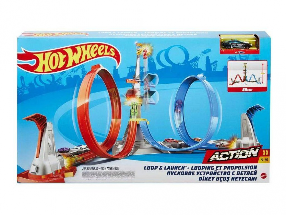 Autodráha Hot Wheels® Loop & Launch™ pozdvihne závod na zcela novou úroveň a auta posviští klecí až do výšky 60 cm! Autodráha Hot Wheels® Loop & Launch™ pozdvihne závod na zcela novou úroveň a auta posviští klecí až do výšky 60 cm! Vozidla v rychlosti prolétnou spirálovitou smyčkou a přistanou na klecové věži, která se při dopadu auta zavře. Klec můžeš nastavit a podle své vlastní soutěže zvýšit nebo snížit – série bodových panelů kolem dráhy dodává výzvě vzrušující atmosféru. Jednotlivé části trasy se do sebe zacvaknou, takže je její sestavení super snadné. Až si přestaneš hrát, jednoduše je zase rozdělej a ukliď. Obsahuje autíčko Hot Wheels® v měřítku 1:64 a je skvělým dárkem pro děti od 5 do 10 let. Barvy a provedení se mohou lišit.