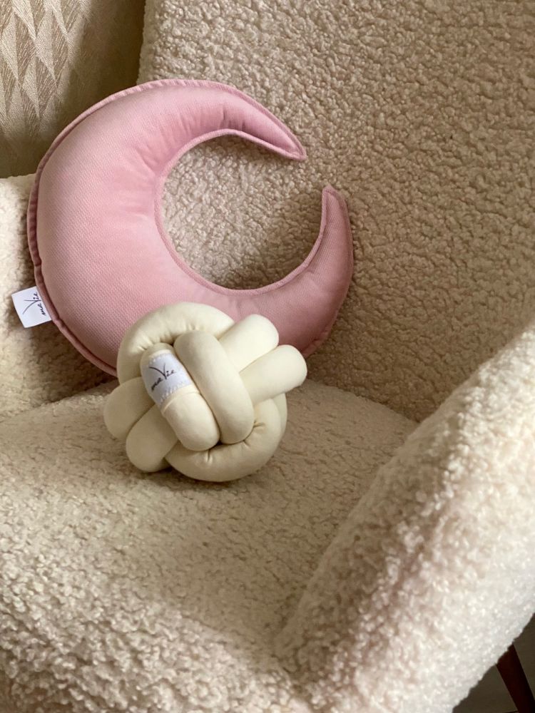 Trendy dekorativní polštářek ve tvaru měsíce.