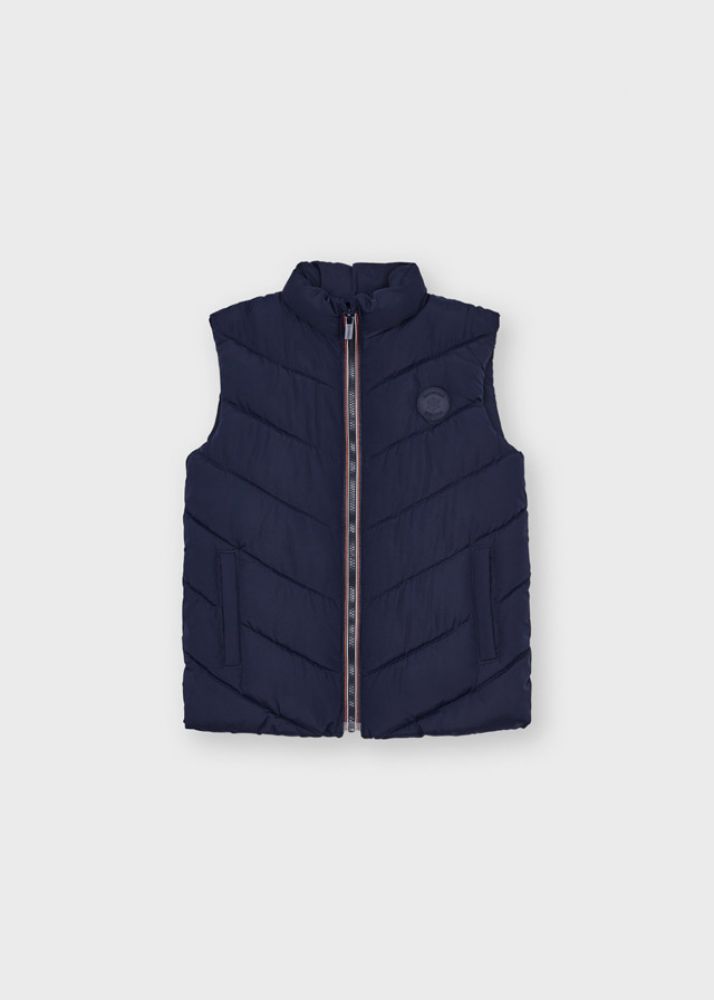 Mayoral hřejivá chlapecká prošívaná vesta. Zapínání pomocí zipu. Funkční kapsy. Zdobeno logem Mayoral.