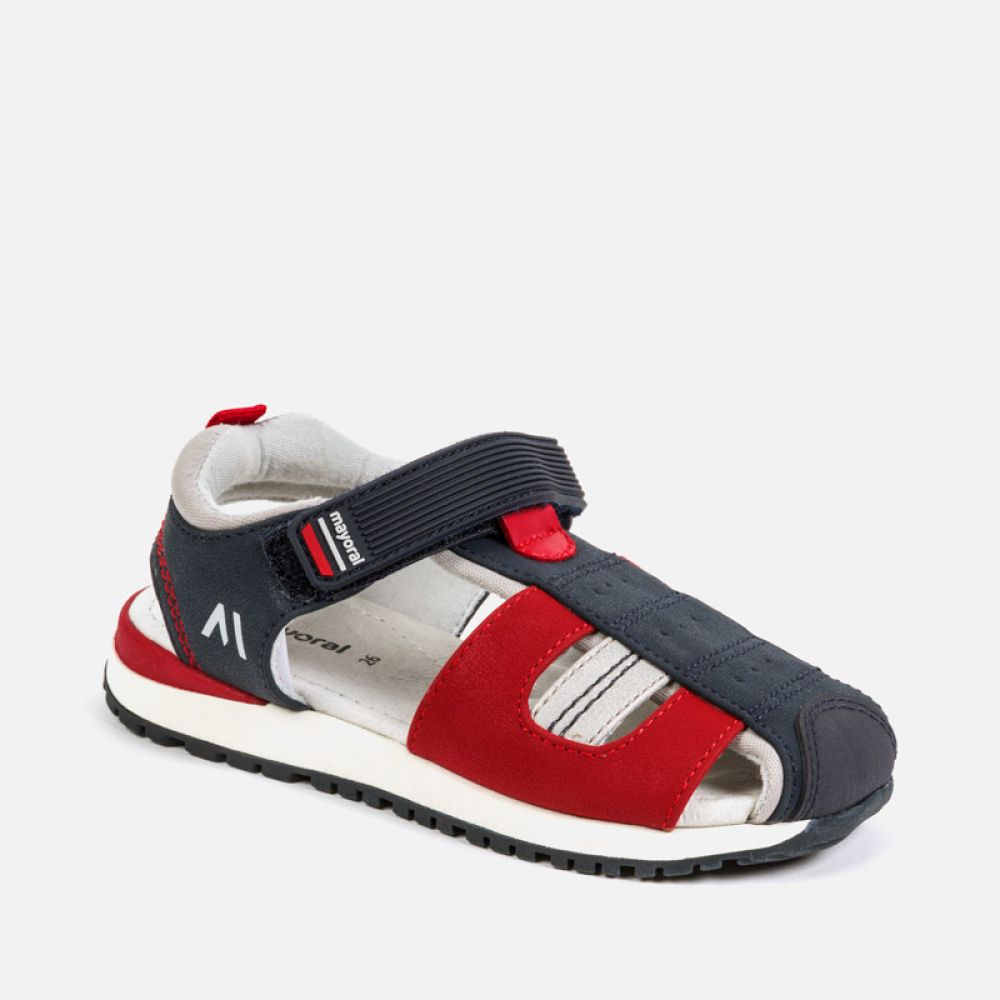 Letní sandály pro chlapce, ideální pro ty horké dny. Boty s vnitřní bavlněnou podšívkou a koženou stélkou. Vnější bota vyrobená z kombinace materiálů. Protiskluzová gumová podrážka pro posílení přilnavosti při chůzi. Nastavitelný pásek na suchý zip, který zaručuje dokonalé uchycení. Zesílená gumová špička pro větší odolnost a odolnost.